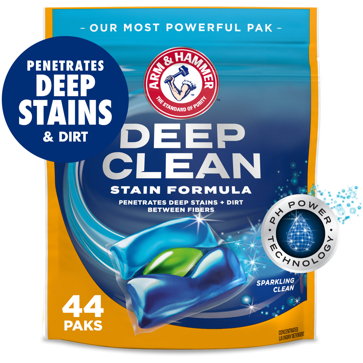 - ARM & HAMMER Deep Clean Stain Formula Laundry Detergent Power Paks, Sparkling Clean Scent for a powerful clean with advanced stain removal technology.